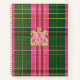 Klassisches Kariertes Rosa und Grün Mit Monogramm Notizbuch