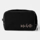 Elegante personalisierte Kosmetiktasche aus Schwarz, mit einer weichen Rose Gold und Schrift Typografie Design. Ein klassisches, elegantes Produkt, um Ihre Kosmetik gemeinsam behalten.