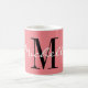 Klassische Korallenpink und individuelle Name Monogramm Kaffee Tasse. Entwerfen Sie Ihre eigenen personalisierten Becher. Elegantes mit Monogramm Namensdesign. Stilvolle Typografie-Vorlage mit Skripttext. Chic Birthday oder Weihnachten Geschenk Idee für Freunde, Familie, Mitarbeiter, Chef, Lehrer, Trainer, Kollegen, Mitarbeiter etc. Anpassbare Farben. Machen Sie Ihre eigene Tasse für Zuhause oder Büro.