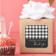 Dieses Design zeichnet sich durch ein klassisches Schwarz-Weiß-Hahnentrittmuster aus. In Kombination mit Ihrem personalisierten Text schafft diese Komposition moderne, schicke und einzigartige Quadrat-Aufkleber.