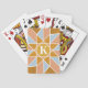Diese Spielkarten verfügen über ein Monogramm, das Sie personalisieren können. Das Design hat auch ein geometrisches Muster eines 8-seitigen Sterns in warmen, goldenen Farbtönen und cool blauen Farben.