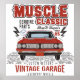 Ein Design eines klassischen Muskelwagens, das auch Vintage Garage für Sondermotoren beinhaltet. Dieses Design sieht auf diesem Poster wirklich effektiv aus