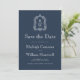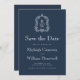 Klassisches Navy Blue Monogram Wappen Script Save The Date