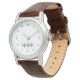 Elegante, personalisierte Uhr mit einem einfachen Typografie-Design. Ein klassisches Mode-Accessoire, um Ihr Outfit oder Aussehen zu vervollständigen.