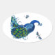 Klassisches Pfau- und Dragonfly-Design Ovaler Aufkleber