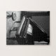 Ein Puzzle zu rahmen mit einem Foto eines schönen alten klassischen Klaviers, ein Vintager Stil in Schwarz-Weiß.