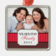 Klassisches Portrait Rote Streifen Band Weihnachts Silbernes Ornament