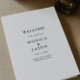Dieses klassische, minimalistisch gefaltete Hochzeitsprogramm eignet sich hervorragend für eine einfache und elegante Hochzeit. Die Vintage Schwarz-Weiß-Typografie verleiht ihr eine klassische formale Touch. Behalt es so, wie es ist, oder wähle es aus, um es mit Kunstwerken oder Grafiken deiner Wahl zu personalisieren.