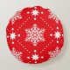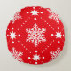 Festliche Rot-Weiß Schneeflocken Weihnachtsmuster auf dem runden Kissen.