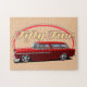 Dieses ist eine Wiedergabe eines klassischen Autos, das unter Verwendung der Kreiden und der Markierungen mit dem digital addierten Hintergrund hergestellt wird.
