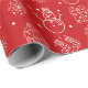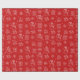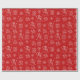 Dieses lustige Weihnachtsverpackungspapier zeichnet sich durch ein festliches, weißes Bild von Schneemännern, Schneeflocken, Geschenken und Skihüten vor einem klassischen roten Hintergrund aus.