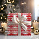 Dieses klassische rot-weiße Urlaubspapier weist horizontale Streifen von Weihnachtskiefern und Schneeflocken auf.