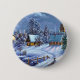 Klassisches, wunderschönes Weihnachtsgeschenk für Weihnachten. Eine friedliche, hellblaue Winterschneewelt mit weißem Schnee, Holzbrücke, Eisfluss, Schneebäumen und warmen Familienhäusern.