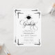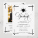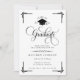 Feiern Sie einen bemerkenswerten akademischen Meilenstein mit dieser klassischen schwarz-weißen Abschluss-Einladung, die mit zeitloser Eleganz und formaler Raffinesse gestaltet ist. Mit aufwendiger goldener Schreibschrifttypografie, dekorativen Eckakzenten und einem Abschlussmützen-Emblem macht diese Einladung eine auffallende Aussage für einen Schul- oder Hochschulabsolventen.