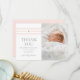 Eine religiöse Danksagkarte mit weichen rosa Streifen und ein einfaches goldenes Kreuz mit Foto auf der Vorderseite mit weichem dunkelgrauem Dankeschön-Typ und Babynamen. Die Rückseite wird bewusst leer verlassen, um zusätzliche Fotos oder längere Nachrichten zu ermöglichen. Diese Dankeschön-Karten sind perfekt für eine Taufe, Bestätigung oder Hochzeit. Sie stimmen sich mit der Taufsuite "Classic Stripe" von Stacey Meacham ab, die hier zu finden ist... http://www.zazzle.com/collections/classic_stripe_baptism-119906052491948400