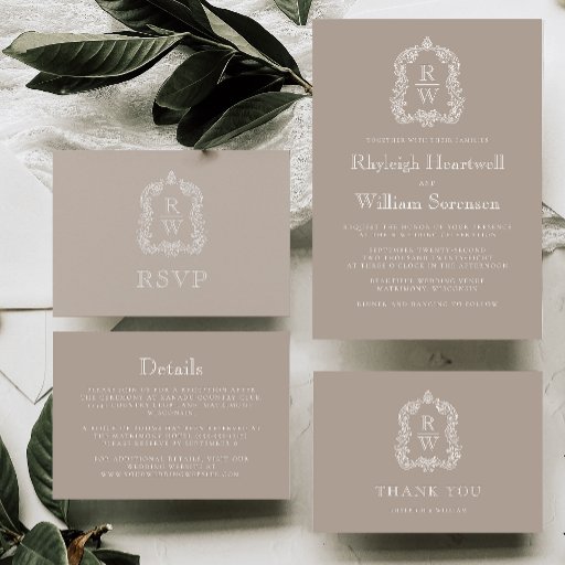 Classic Monogram Crest Taupe Wedding SuiteDesignt von Akhates Designs