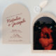 Klassisches tiefrotes skurriles Foto-Bogen-Hochzei Einladung