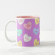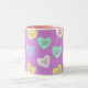 Klassisches Valentinisches Candy Hearts auf Lila Zweifarbige Tasse
