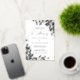 Diese moderne Silber-Folie Hochzeitseinladung hat einen klassischen weißen Hochzeitslook mit einem echten Folienprint. Bearbeiten Sie die Vorlage ganz einfach nach Ihren Wünschen. Die Rückseite der Einladung ist leer, was ihr eine wunderbar elegante Oberfläche verleiht, die sich auf Ihre Details und die wunderschöne Folie konzentriert. Das silberne Muster besteht aus Eukalyptuselementen aus Blätter und Beeren. Einladung zum klassischen weißen Hochzeitssilber.