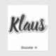 Klaus Mens Name, Aufkleber