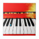 Fliese mit posterized Ansicht des Klaviers mit Schwarzweiss-Klavierschlüsseln und gelbem und rotem Klavierrahmen.