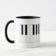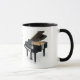 Diese Tasse kennzeichnet ein Bild eines Stutzflügelklaviers auf einer Seite und Klavierschlüsseln auf der anderen Seite.  In der Mitte ist ein kundengerechter Raum, zum Ihres Namens oder Mitteilung zu setzen.