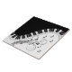 Klassische schwarz-weiße Tastatur mit geschwungenem Flair. Hinzugefügte Musiknoten fügen einen festlichen Look hinzu.