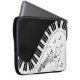 Klassische schwarz-weiße Tastatur mit geschwungenem Flair. Hinzugefügte Musiknoten fügen einen festlichen Look hinzu.