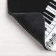 Klassische schwarz-weiße Tastatur mit geschwungenem Flair. Hinzugefügte Musiknoten fügen einen festlichen Look hinzu.