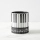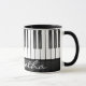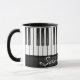 Piano Keyboard Design Tasse mit anpassbarem Text und anpassbarer Farbe im Bereich der weißen Tastatur.