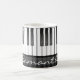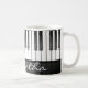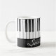 Piano Keyboard Design Tasse mit anpassbarem Text und anpassbarer Farbe im Bereich der weißen Tastatur.