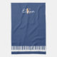 Ein stilvolles Küchentuch in dunkelblau mit einer blauen und weißen Klaviertastatur an einem Rand. Personalisieren Sie mit dem ersten, in hellorange, mit ihrem Namen in der Schrift weiße Schrift Typografie. Das mit Monogramm Teetuch ist ein ideales Geschenk für Pianisten, Musiklehrer und Musiker.