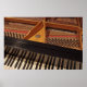Kunstfoto eines wunderschönen Vintagen Babygrandpiantasten und Pinblock und der Gusseisenplatte.