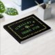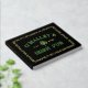 Personalisiertes Gästebuch aus Goldfolie für Ihren irischen Pub mit grünen und goldenen Schriftart, einem keltischen Knotenrahmen, der den Text umrahmt und in Goldfolie gedruckt, Ihr Name in gebogenem Text über einem Kleeblatt mit dem festgelegten Jahr und der Name Ihres Pub darunter.