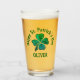 Kleeblatt Clover Green St. Patrick`s Day Bierglas. Ein Happy St. Patrick`s Day Text mit einem handgezeichnet grünen Kleeblatt zum Glück. Clover hat vier Blätter. Sie können den Text ändern.