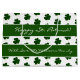 Happy St Patrick, Mit Liebe von The Williams Family oder Ihrem Text, Kleeblatt, Drei Leaf-Clovers-Muster, elegante grüne weiße Großgeschenktasche für St Patrick oder Ihre irische Occasion