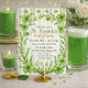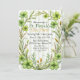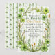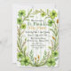 Eine elegante, mit Kleeblättern gestaltete Einladung, umrahmt von üppigem Grün und dezenten Streifenakzenten. Der gesamte Text ist anpassbar, und das passende Muster erscheint auf der Rückseite.
