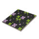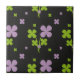 Originelles, nahtloses Blumenmuster, lila und grüne Kleeblätter auf schwarzem Hintergrund.