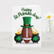 Entworfen mit einer unterhaltsamen Mischung aus Sport und irischem Jubel, zentriert sich die Illustration auf einen warmen, braunen American-Football, der mit einem smaragdgrünen Koboldhut mit einem dunklen Band und einer goldenen Schnalle versehen ist. Zwei schwarze Kessel sitzen auf beiden Seiten, gefüllt mit glänzenden Goldmünzen, die nach oben überquellen und wie ein kleiner Glücksregen um den Football schweben ☘️. Jeder Kessel zeigt ein grünes Kleeblatt-Emblem, und die passenden Grüntöne binden die Szene vor einem hellen weißen Hintergrund zusammen. Die schwebenden Münzen sind nach innen gebogen, als ob die beiden Töpfe sich zum Football neigen, was dem Layout ein freundliches, gemeinsames Party-Gefühl gibt 💚. Über dem oberen Rand wölbt sich der Text „Happy St. Patrick’s day!“ in dunkelgrüner Schrift, positioniert über den Hauptelementen wie ein Banner. Die weißen Schnürsenkel des Footballs stechen scharf gegen das Braun hervor, und eine leichte Schattierung auf dem Hut