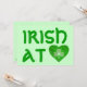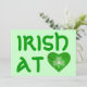 Ein modernes Design mit einem strahlenden, grünen Herz, einem glänzenden Kleeblatt auf grünem Hintergrund und einem "Irish at (heart)" grünen Schriftzeichen. Einladung mit einem individuell gestaltbaren Design für Sie, um mit Ihrem eigenen Hintergrund Farbe Text, Bilder und Ideen zu personalisieren. Erstellt mit Originalfotos und digitalen Techniken von Jess Perry.