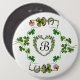 KLEEBLATT HERZ, BLUME, GRÜNES BLUMENMONOGRAMM weiß Button