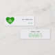 Modernes Design mit einem "glänzenden", "glitzernden", grün-weißen Herz , mit einem Kleeblatt im Inneren, auf weißem Hintergrund und grünem Text. Visitenkartenvorlage mit individualisierbarem Design für Sie, um mit Ihrem eigenen Text, Bildern und Ideen zu personalisieren. Bitte beachten Sie, dass es sich um ein gedrucktes Bild handelt, das mit Originalfotos und Digitaltechnik erstellt wurde, es nicht glänzt oder echte Glitzern enthält.