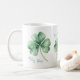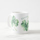 Eine Aquarellillustrierung von drei grünen Wolkenblättern mit der Phrase "Mögen Ihre Segnungen viele sein." Personalisieren Sie Ihre Initialen, um die Kaffee-Tasse noch spezieller zu machen.