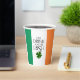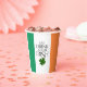 Kleeblatt isst trinken und irische Flagge führen Pappbecher