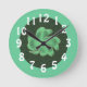 Kleeblatt oder Klee (schattiert) in der Mitte der Uhr, mit strukturierter dunkelgrüner Mitte Hintergrund und grünem Außenhintergrund. Mit weißen Zahlen. Der äußere Hintergrund und die Zahlen können von Ihnen geändert werden.