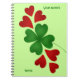 Ein niedliches, spiralgebundenes Notizbuch für den St. Patrick's Day oder jeden Tag mit einem grünen 4 Blatt Kleeblatt und roten Herzen. Ideal für Romantiker.