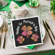 Kleeblatt in Pink Black St. Patrick's Day Party Napkins. Ein Happy St. Patrick`s Day Text mit handgezeichnet rosa Kleeblättern für Glück auf schwarzem Hintergrund. Clovers hat vier Blätter. Sie können den Text ändern.