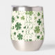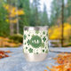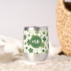 Dieser Weinwäscher hat ein lustiges irisches Muster aus verschiedenen grünen Kleeblättern und Wirbel auf weißem Hintergrund. In der Mitte befindet sich ein rund passendes grünes Kreissagebanner mit Ihrer dreiteiligen Monografie. Stolz zeigen Sie Ihre irische Seite!