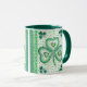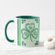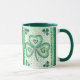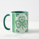 Große weiße Tasse mit dunkelgrüner Lippe und Haltegriff und Kleeblatt-Design, von einer Aquarellfarbe von Judy Adamson. Auch passende Grußkarten und andere Geschenke sind erhältlich.