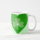 Ein modernes Design mit zwei leuchtenden, grünen Herzen und glitzernden Kleeblättern auf grünem Hintergrund. Tasse mit individualisierbarem Design für Sie, um Ihre eigene Hintergrundfarbe, Text, Bilder und Ideen zu personalisieren. Verfügbar in allen Stiloptionen. Erstellt mit Original-Fotografien und digitalen Techniken von Jess Perry.